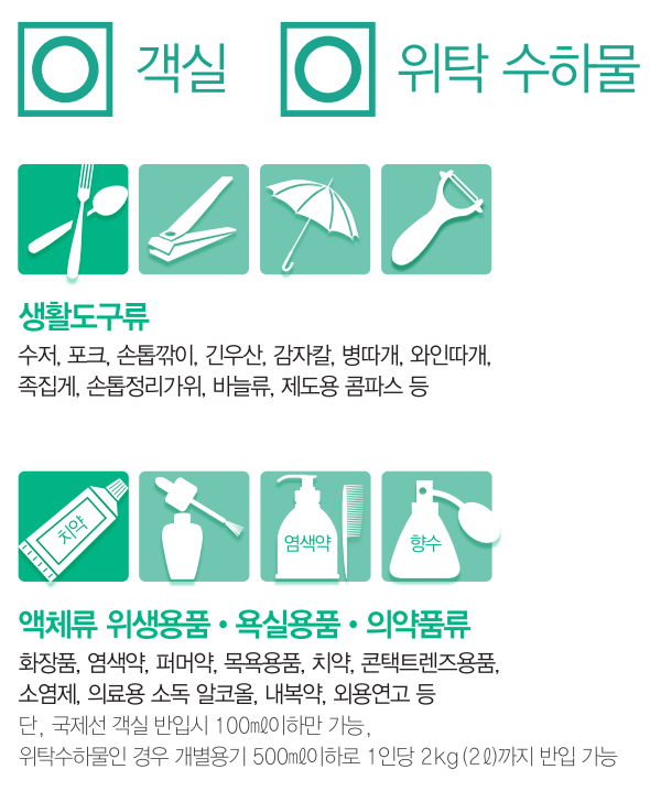 이외에도 특별 관리가 필요한 물품들이 있으니, 공항의 안내문을 참고하시는 것이 좋습니다.